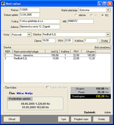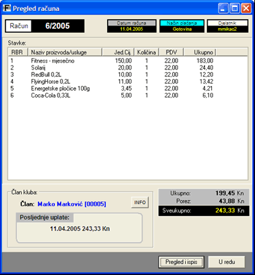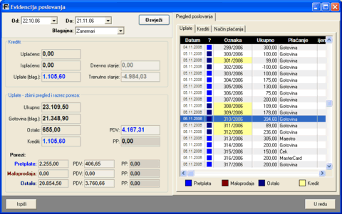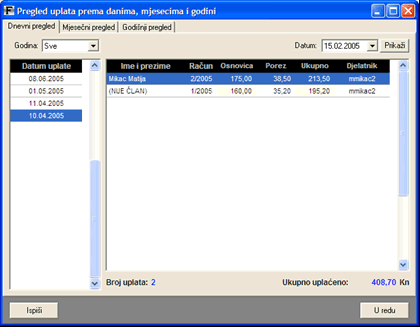 Pregled dnevnih, mjesečnih i godišnjih uplata